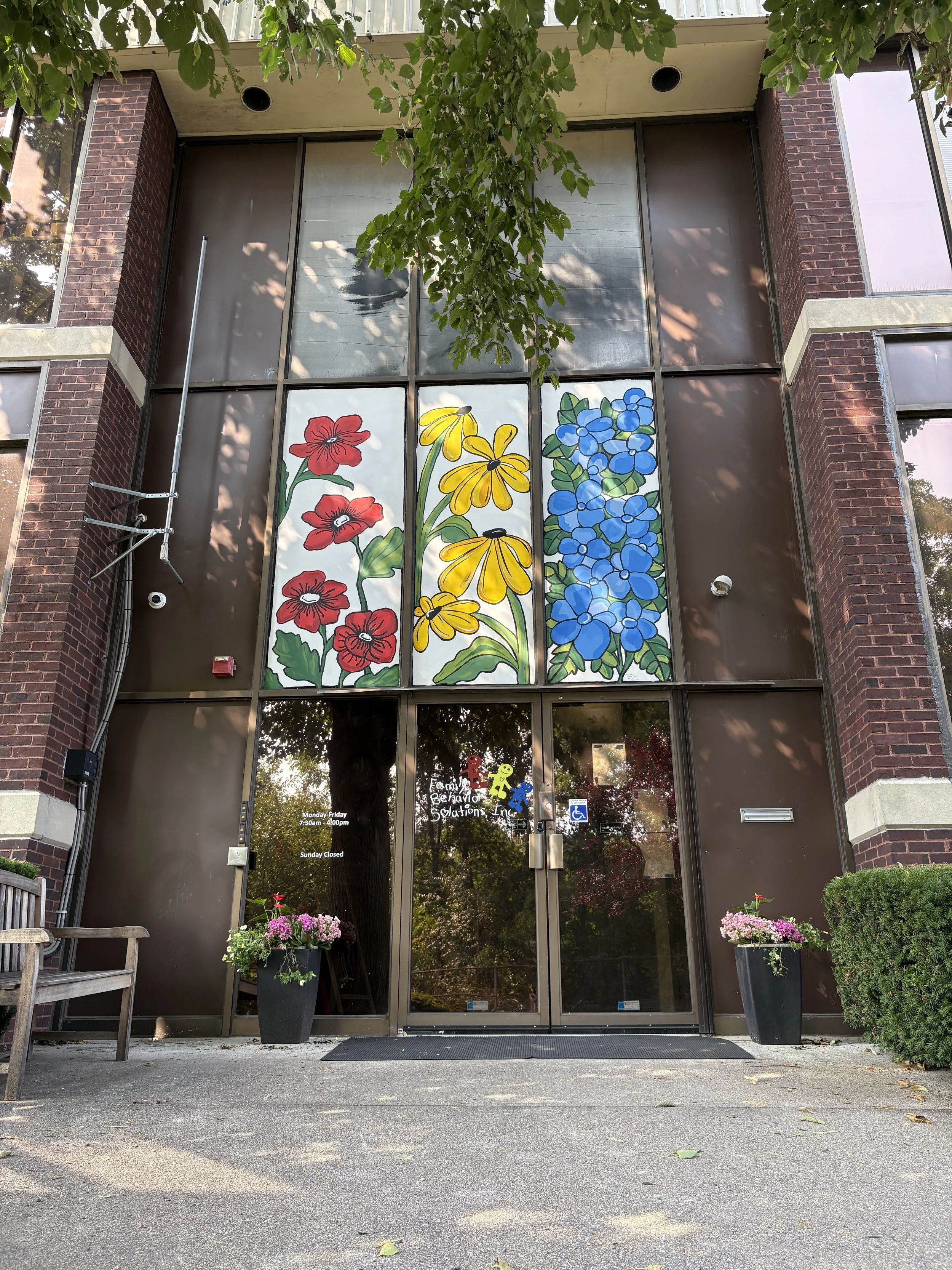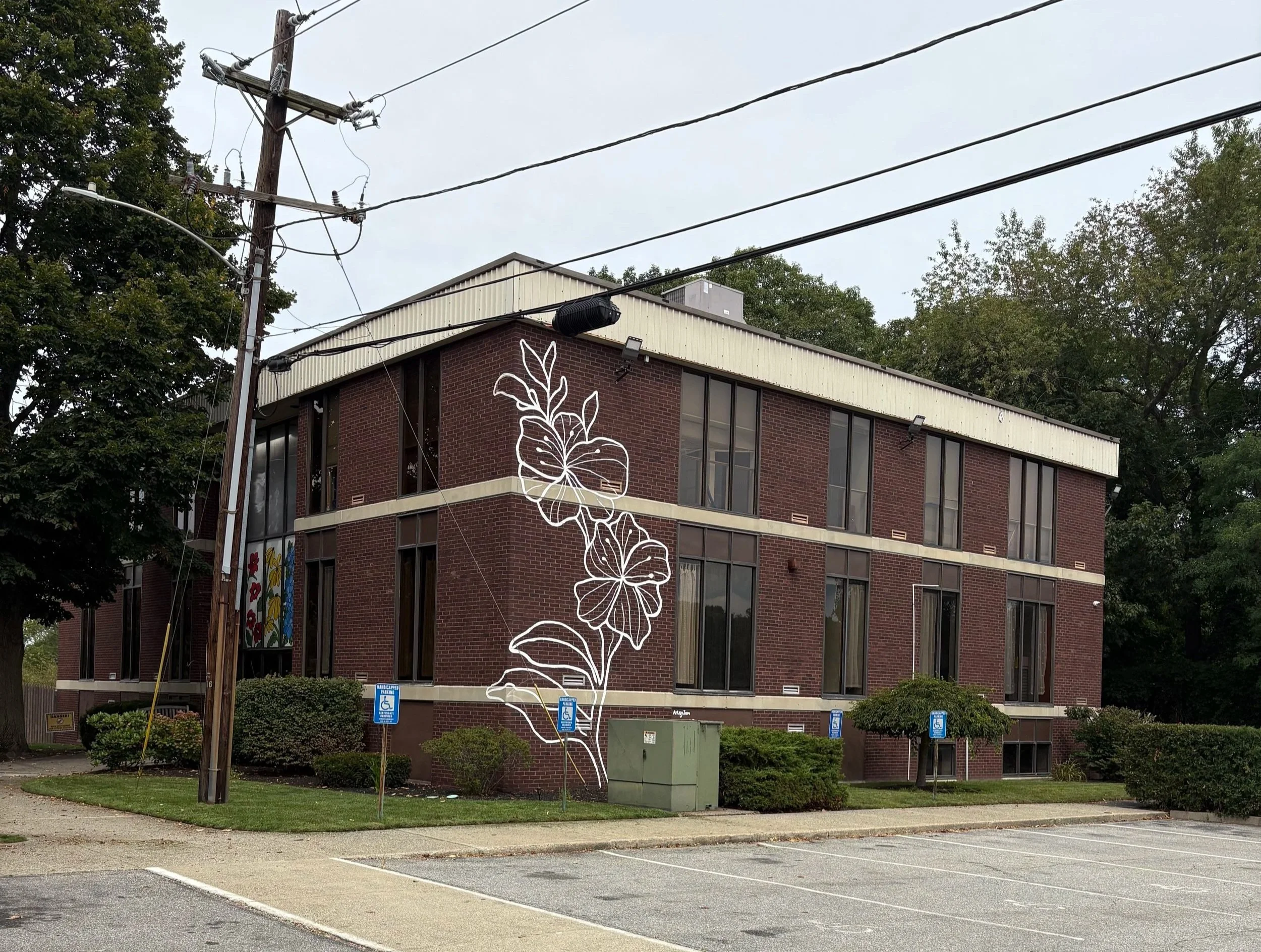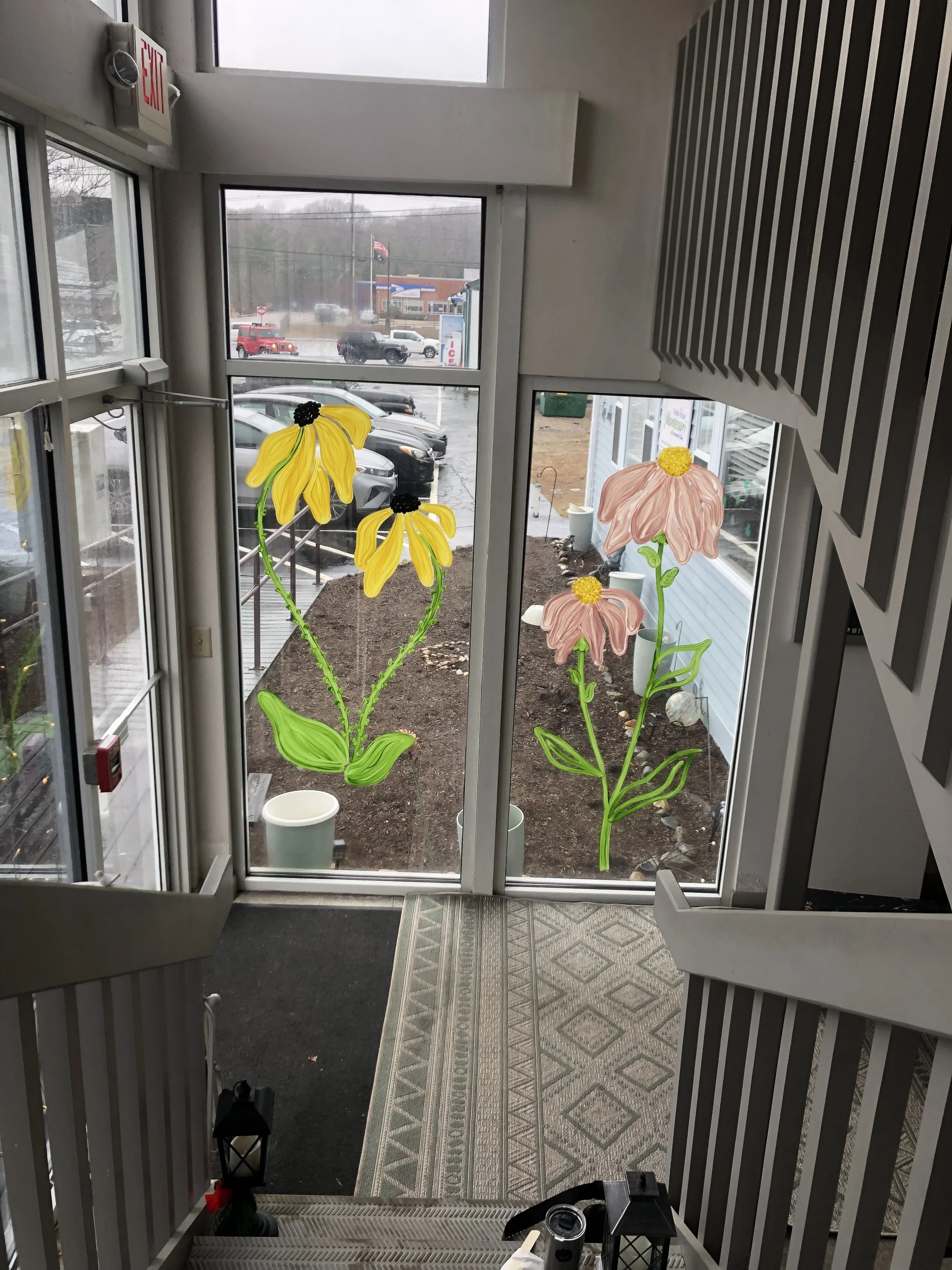 I added pops of color to the front windows of this office building in East Providence. I was asked to return to paint the side of the brick building as well.